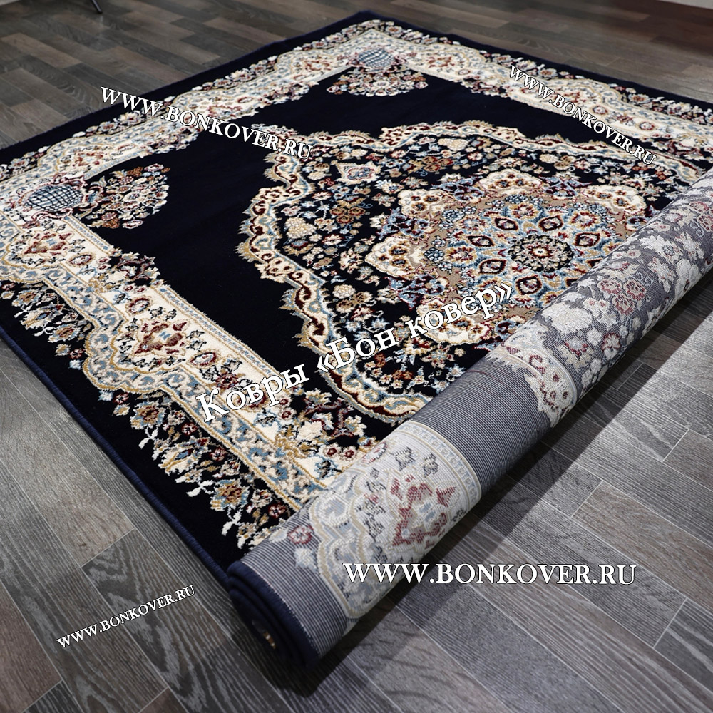 Долго искали смотрели на разных сайтах , в итоге ваш ковер приглянулся больше всего . Доставили в рулоне на следующий день , оплатили при получении . Идеальный вариант , цвет темно синий с переливом - рисунок очень выйгрышно смотрится !