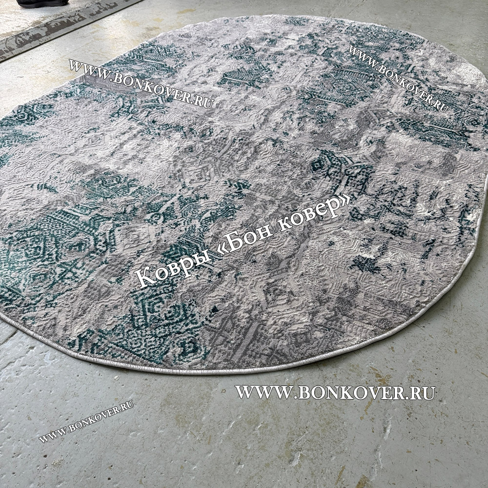 Изящный Современный ковер для комнаты 04 Бирюзовый Овал наполняет интерьер жилого пространства теплом и уютом, гармонично сочетает в себе изящество и стиль. Он создан из высококачественного сырья, прочный и долговечный.